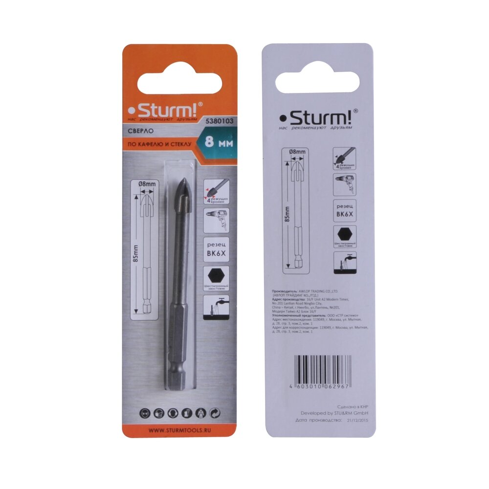 5380103 Сверло по стеклу и кафелю, d 8мм, шестигранный хвостовик, 4 грани, Sturm! интересное: