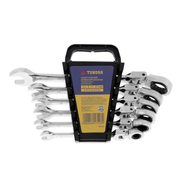 Тундра Набор ключей комбинированных трещоточных шарнирных , CrV, 72 зуба, 8 - 17 мм, 6 шт. 4657128
