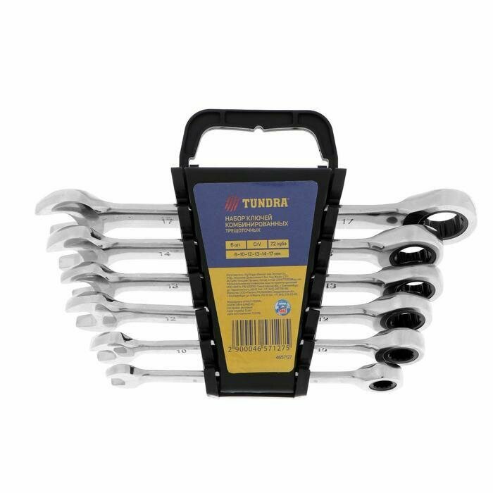 Набор ключей комбинированных трещоточных TUNDRA, CrV, 72 зуба, 8 - 17 мм, 6 шт. TUNDRA 4657127