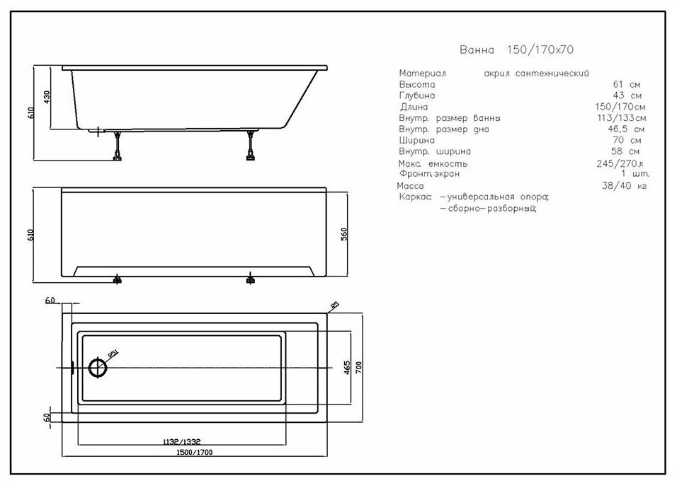 | Плюсы: | добротная (вместительная 245 л до верха ) акриловая ванна . прочная .при грамотной установке не коробиться .днище для крепления ножек усиленно . Вес самой ванны - 27 кг .ошибочно указано 38 кг -это брутто =тара слив .перелив .ножки и пр . Длина 150 см ширина 70 см по верхним бортикам .глубина 43 см . дно ровное прямоугольное . Доставка на 5 = курьер заранее позвонил . поднял на этаж занес в квартиру .без одолжений и нотаций (ООО КЕРАМИКПЛЮС ). Не всегда так бывает( бывает от лифта в квартиру 2м даже за деньги .целая катастрофа и куча нотаций . лучше 1000 р переплатить чтобы не видеть и не слышать таких курьеров с их товаром ) . Ванна 12500р (керамикплюс ) своих денег стоит .фурнитура продается отдельно .гарантия производителя 20 лет . |