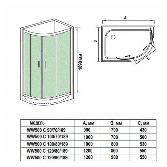 Душевое ограждение WeltWasser 189х120х90 WW500 С 120/90/189 L/R 10000004096 без поддона
