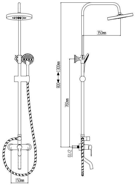 | Высота стойки для душа | 1300 мм / 1300 мм |