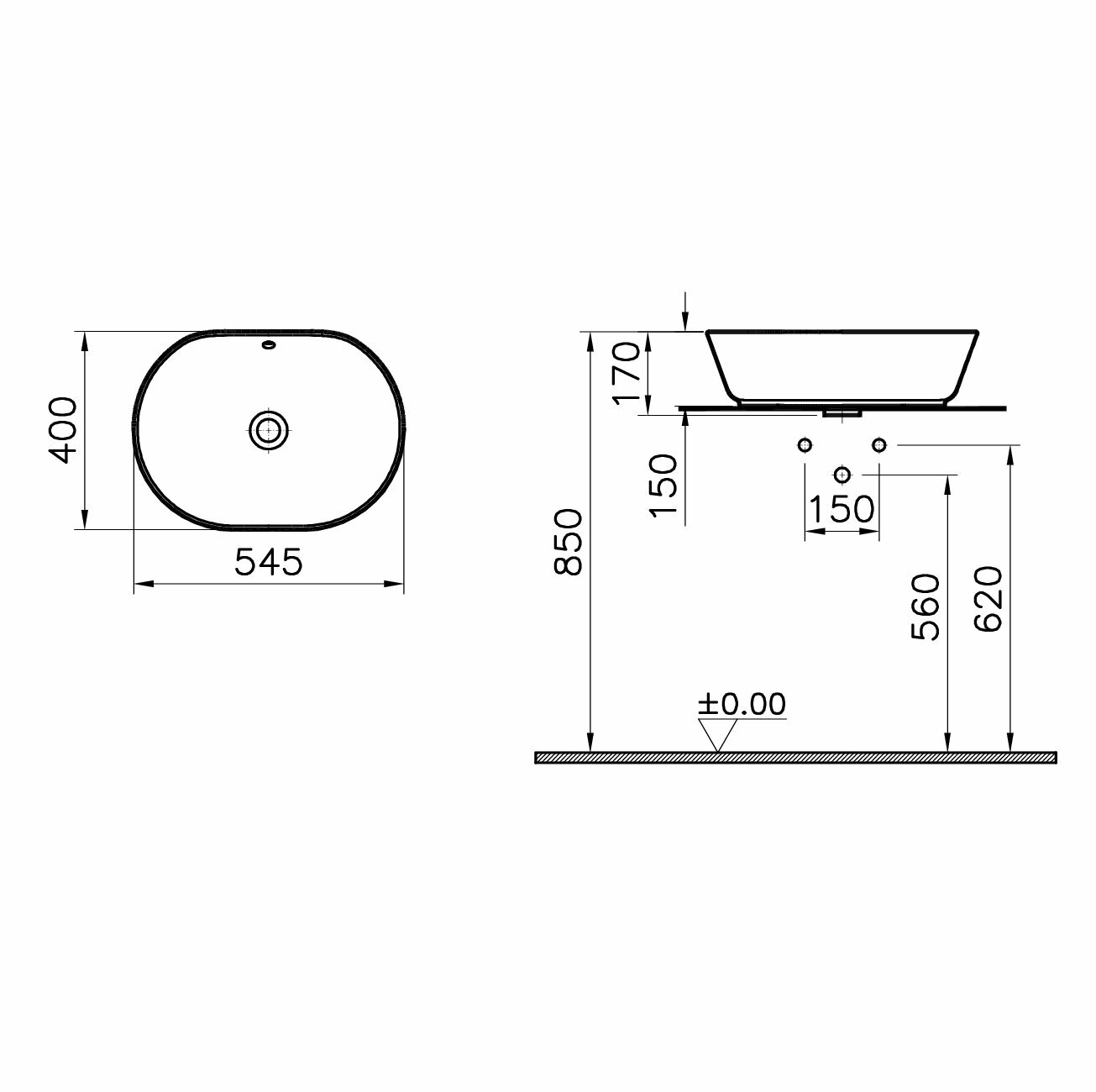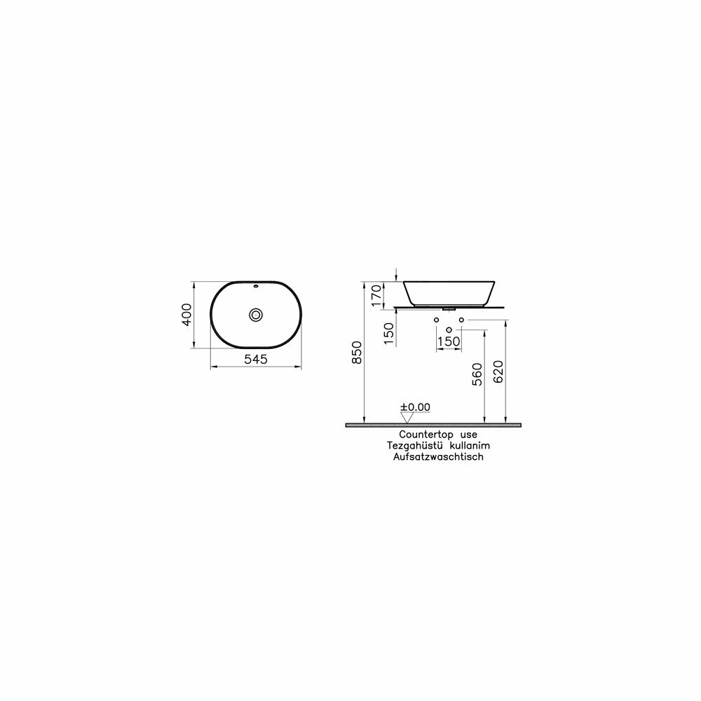 Раковина Vitra Geo 545х400х170 накладная, перелив, без отверстия под смеситель, белый 7427B003-0012