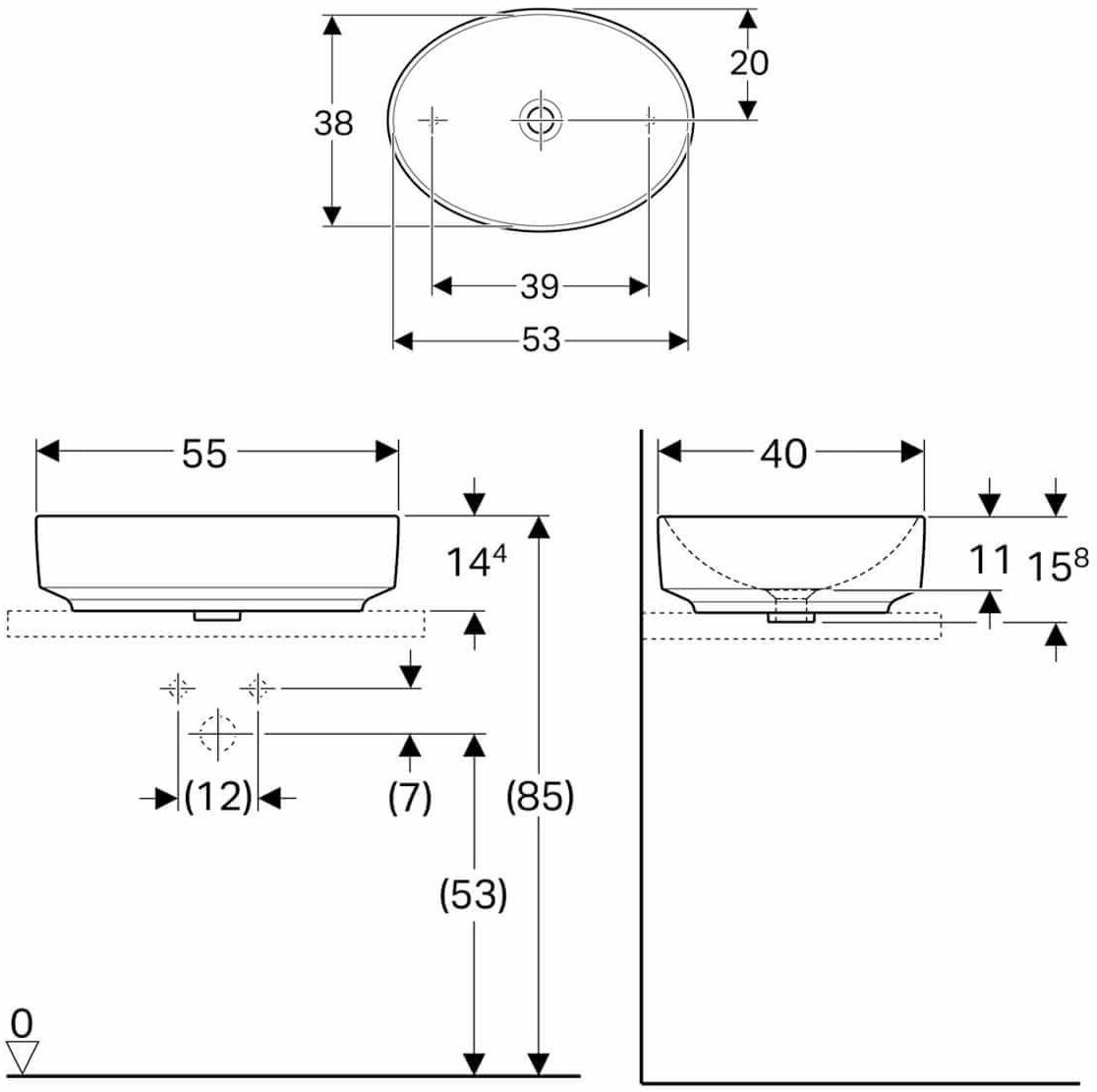 Раковина с установкой на столешницу Geberit Variform 500.771.01.2