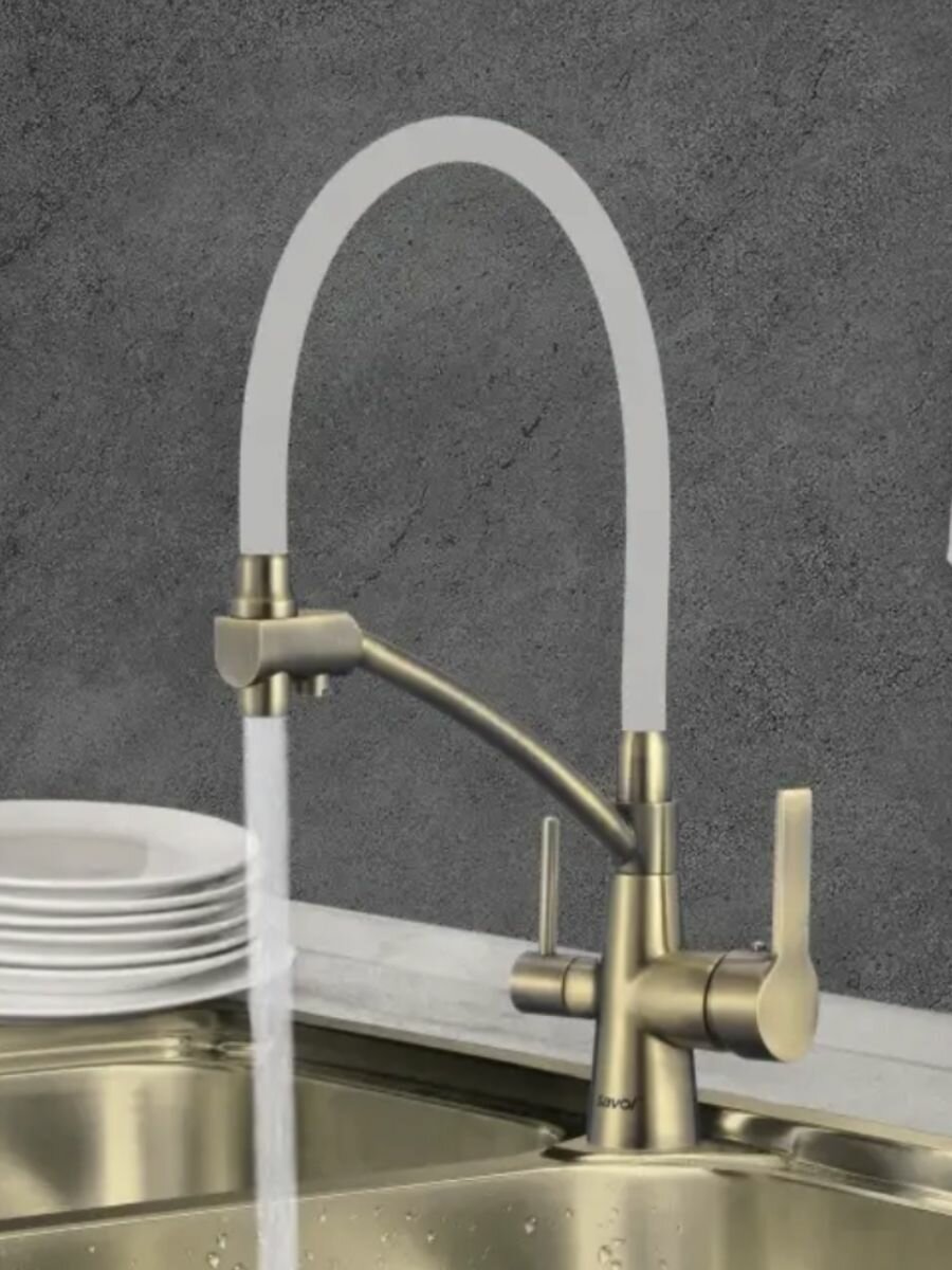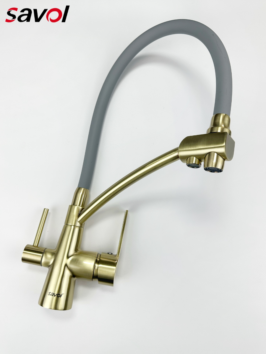 Смеситель Savol S-L1805B-04 для кухни, с подключением к фильтру, цвет золото / серый