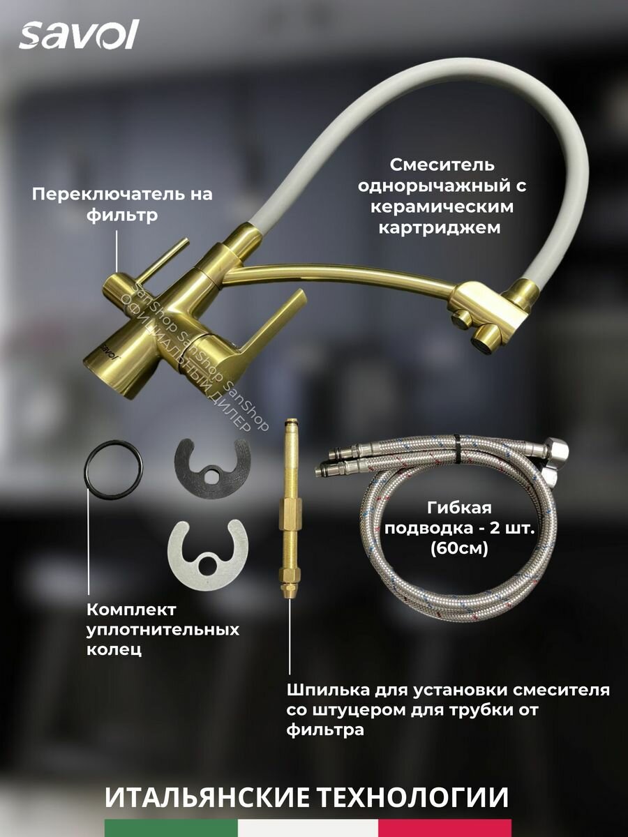 Savol Смеситель для кухни золотой под фильтр Savol (S-L1805B-05)