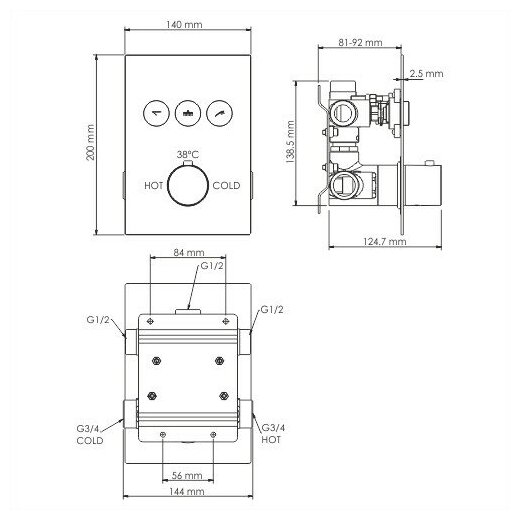 Термостат WasserKRAFT Neime 1944 для ванны с душем с внутренней частью