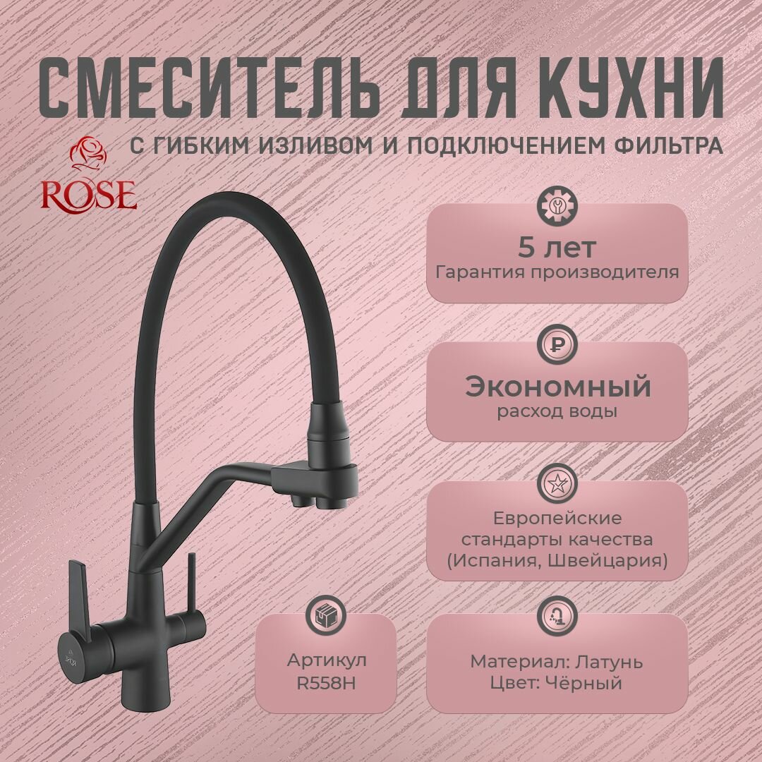 Смеситель для кухни с гибким изливом и фильтром для воды Rose R558Н, черный