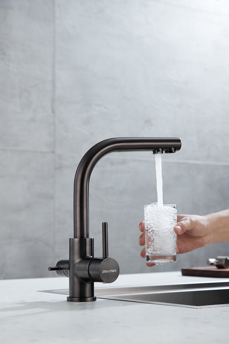 PAULMARK ESSEN Смеситель для кухни под фильтр 2 в 1, вороненая сталь