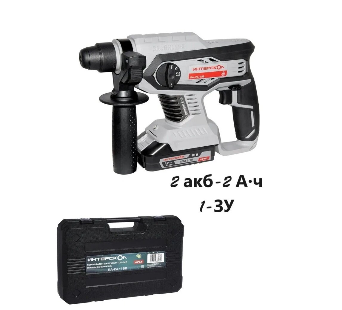 Профессиональный аккумуляторный бесщеточный перфоратор ИНТЕРСКОЛ ПА-24/18В АПИ, кейс, 2 аккум. 2Ач, ЗУ, 579.2.2.70