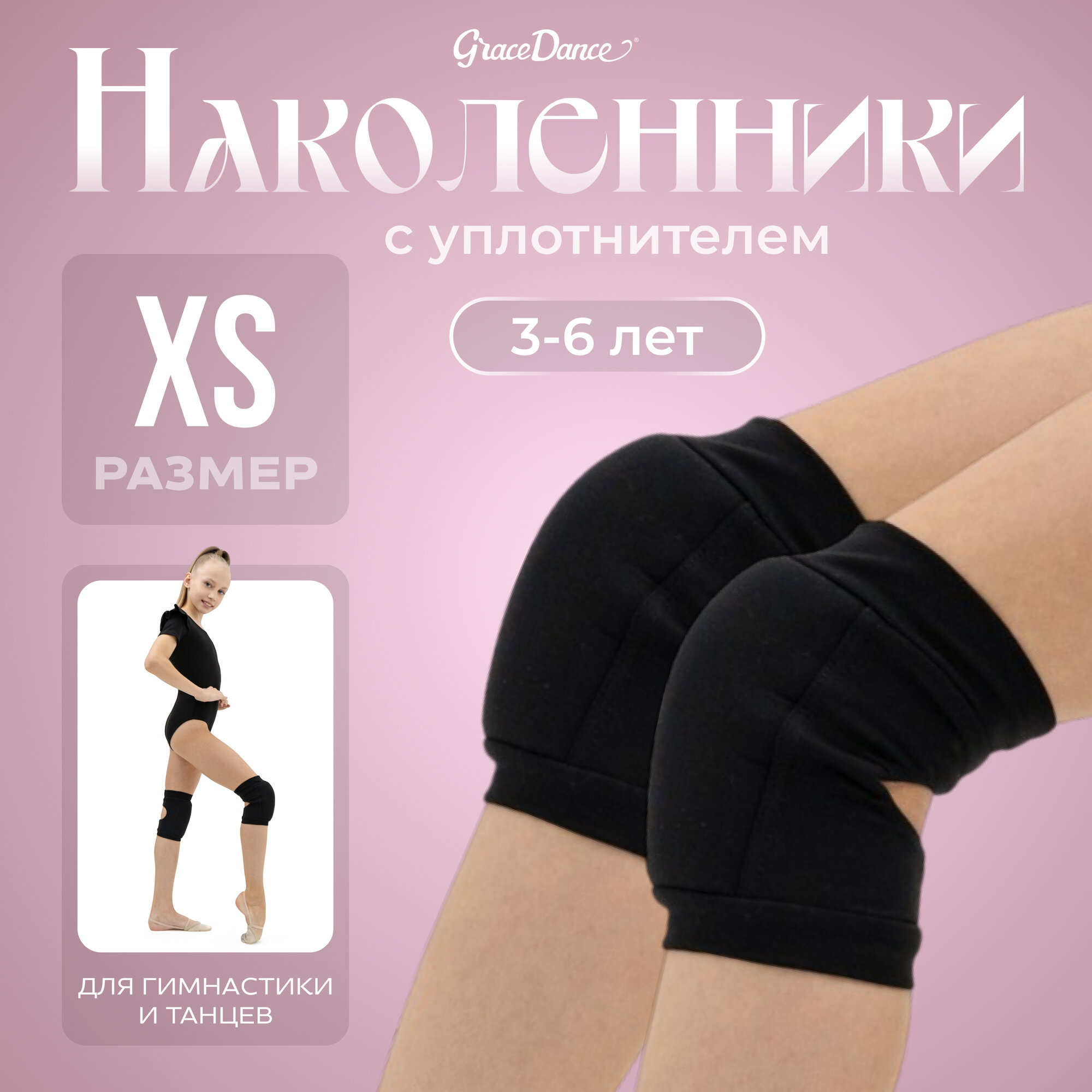 Grace Dance Наколенники для гимнастики и танцев с уплотнителем, р. XS (3-6 лет), цвет чёрный