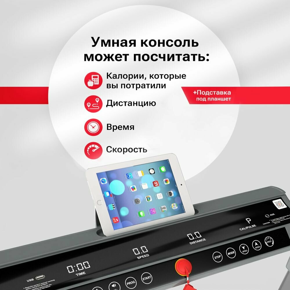 Стильно смотрится Компактная и не громоздкая для квартиры, но при этом достаточно комфортное по ширине полотно для ходьбы, а то у не которых дорожек уж очень узкая лента - а у этой прям широкая комфортная лента для шага и бега! Можно подцепить телефон и из колонок дорожки громко играет музыка! Прям круто, потому что я не люблю наушники. |