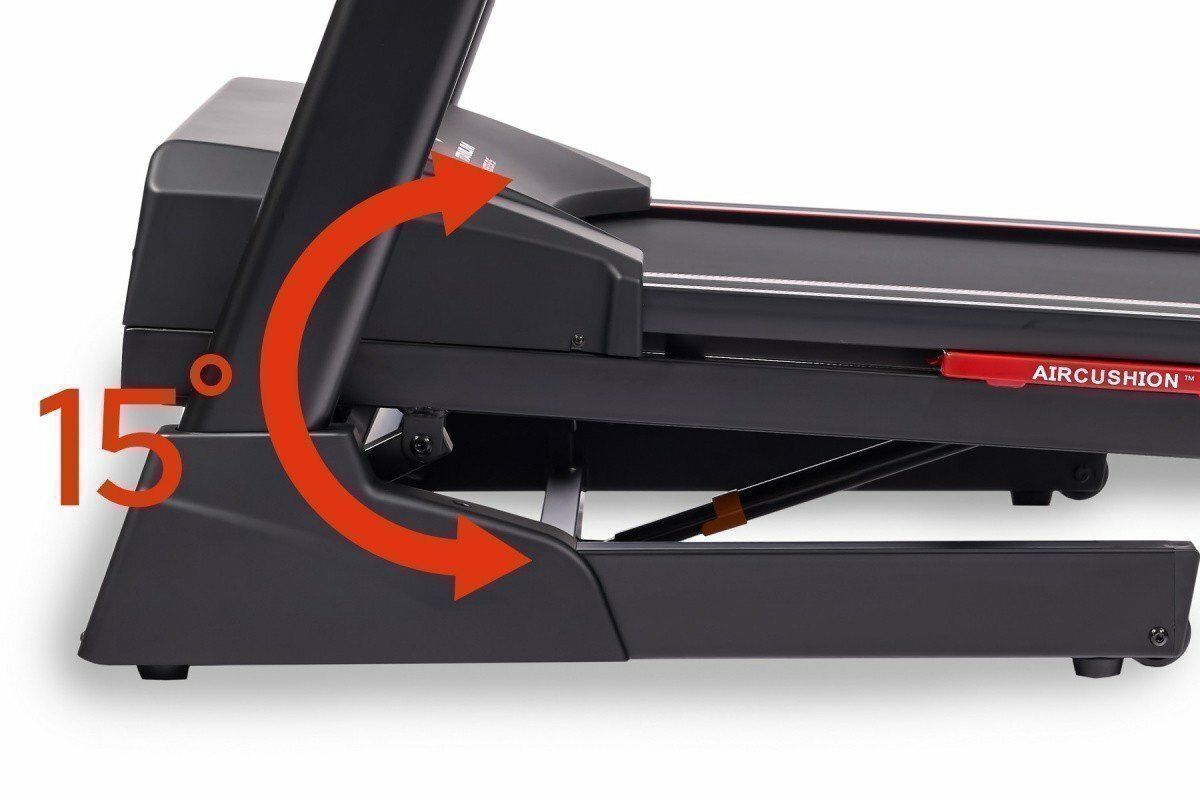 | Плюсы: | Дорожка для серьезных тренировок. Тянет вес больше заявленных 140 кг. Мы встали вдвоем с общим весом 162 кг, на двигателе и полотне это никак не сказалось. Амортизация достойная, бегать мягко, за полтора часа постоянного бега болевых ощущений в суставах не появилось. Кстати у меня даже в парке иногда побаливает левое колено, тут все хорошо. Есть телеметрический приемник. Настойчиво рекомендуют от того же производителя. У меня уже есть Polar 34, прицепился без проблем. Складывается компактно, много места не занимает. Можно катать на роликах, хотя при частых тренировках считаю это бессмысленным занятием. |