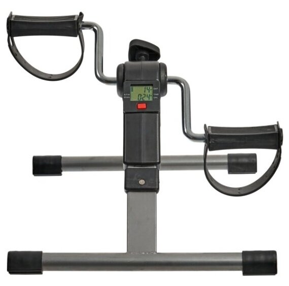 | Плюсы: | Лёгкий, складной (не занимает много места), наличие мини-компьютера, который считает кол-во кручений педалей, количество потраченных калорий, пройдено расстояние, время тренировки |