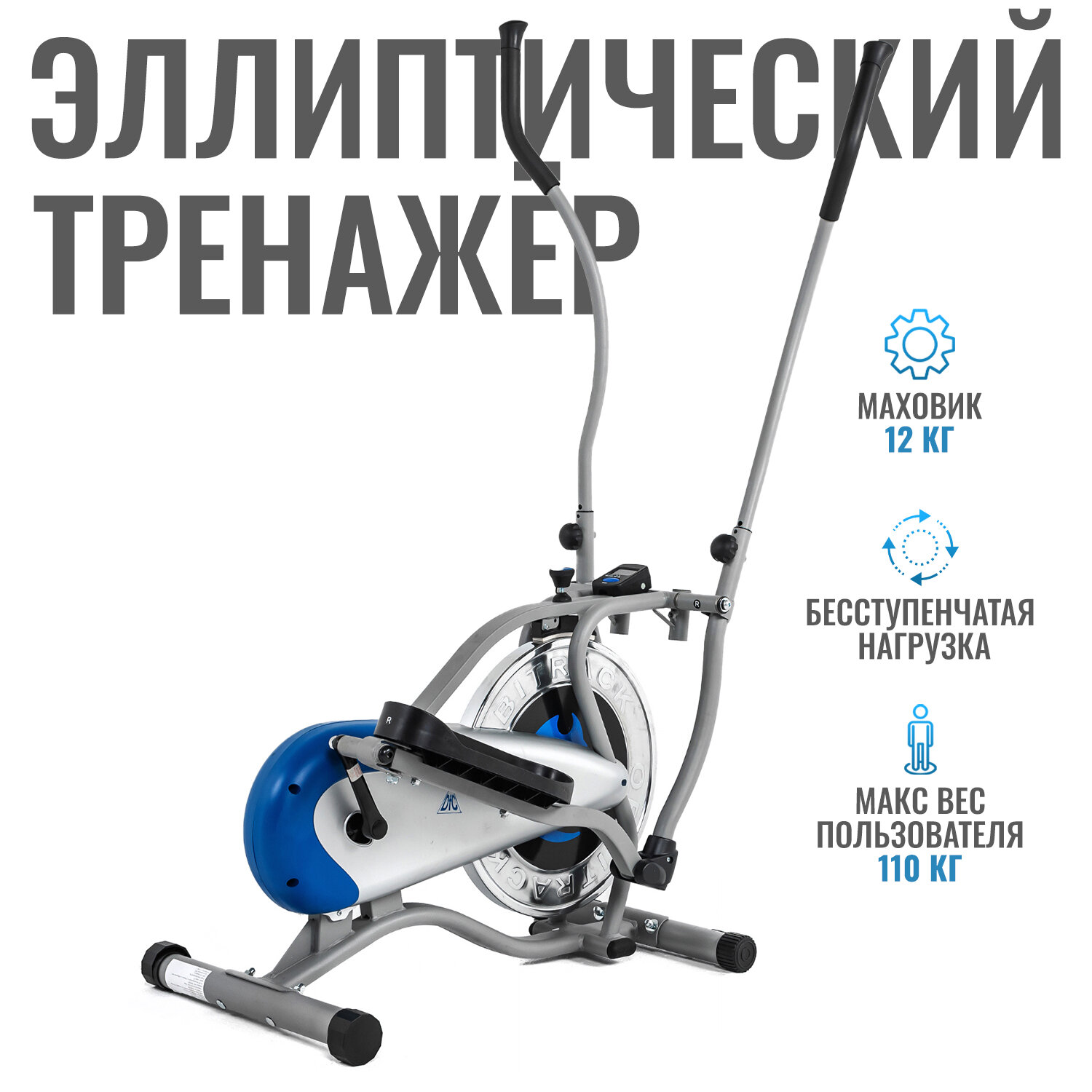 Домашний эллиптический тренажер DFC E2050 длина шага 29 см маховик 6 кг LCD-дисплей, нагрузка до 110 кг