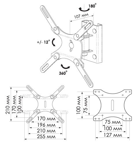 Кронштейн для телевизора Trone ЖК-701 с наклоном и поворотом до 25кг 15..23 дюйма VESA 75-100-127-200мм чёрный