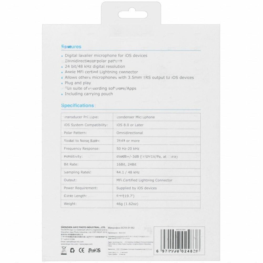 Ниже Вы можете прочитать отзывы на Микрофон петличный Boya BY-M2 для смартфонов и планшетов на iOS всенаправленный, 6 м., ознакомится с подробными характеристиками, посмотреть интересные обзоры и фотографии на Микрофон петличный Boya BY-M2 для смартфонов и планшетов на iOS всенаправленный, 6 м..