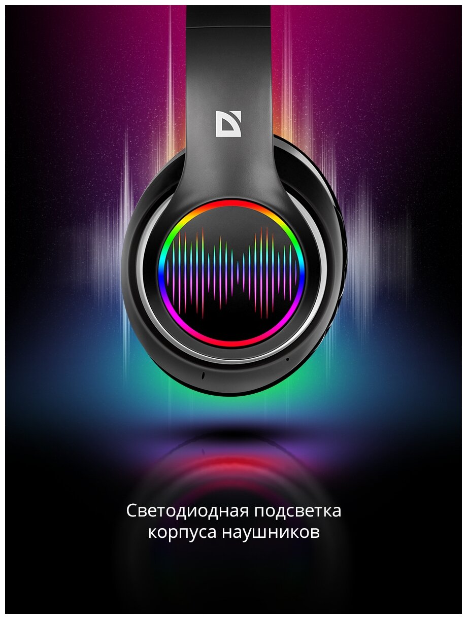 Накладные наушники Defender FreeMotion B545 черный LED Bluetooth (63545)