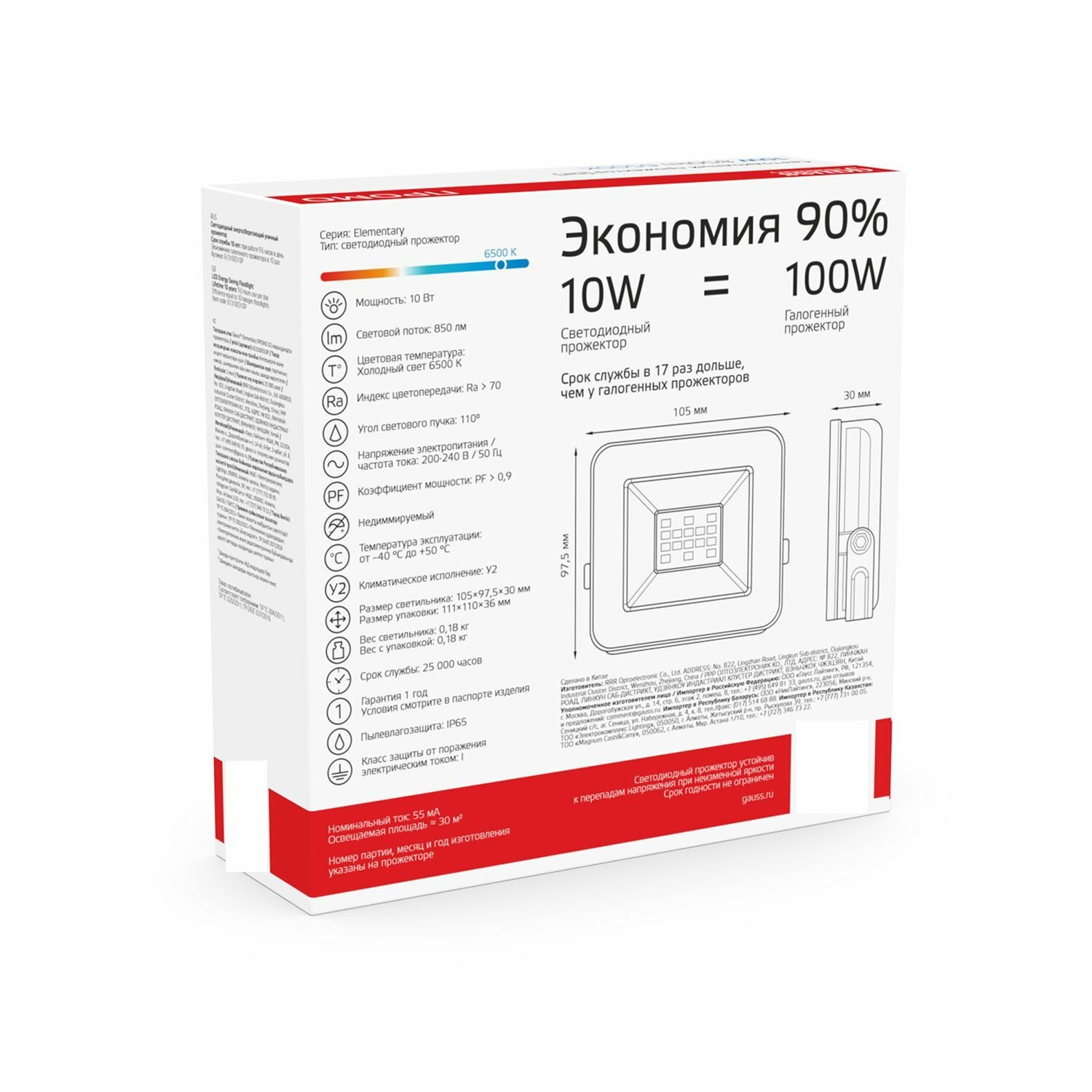 Прожектор уличный GAUSS Elementary, 10Вт [613100310p]