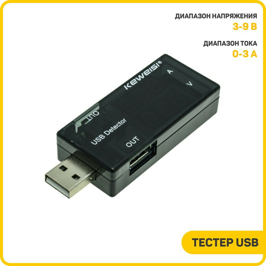 Цифровой тестер USB доктор USB-порта, вольтметр, амперметр(V, A) Keweisi KWS-10VA 3-9V (черный корпус)