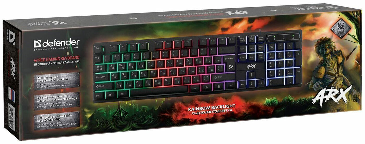 Проводная игровая клавиатура Defender Arx GK-196L RU радужная подсветка интересное: