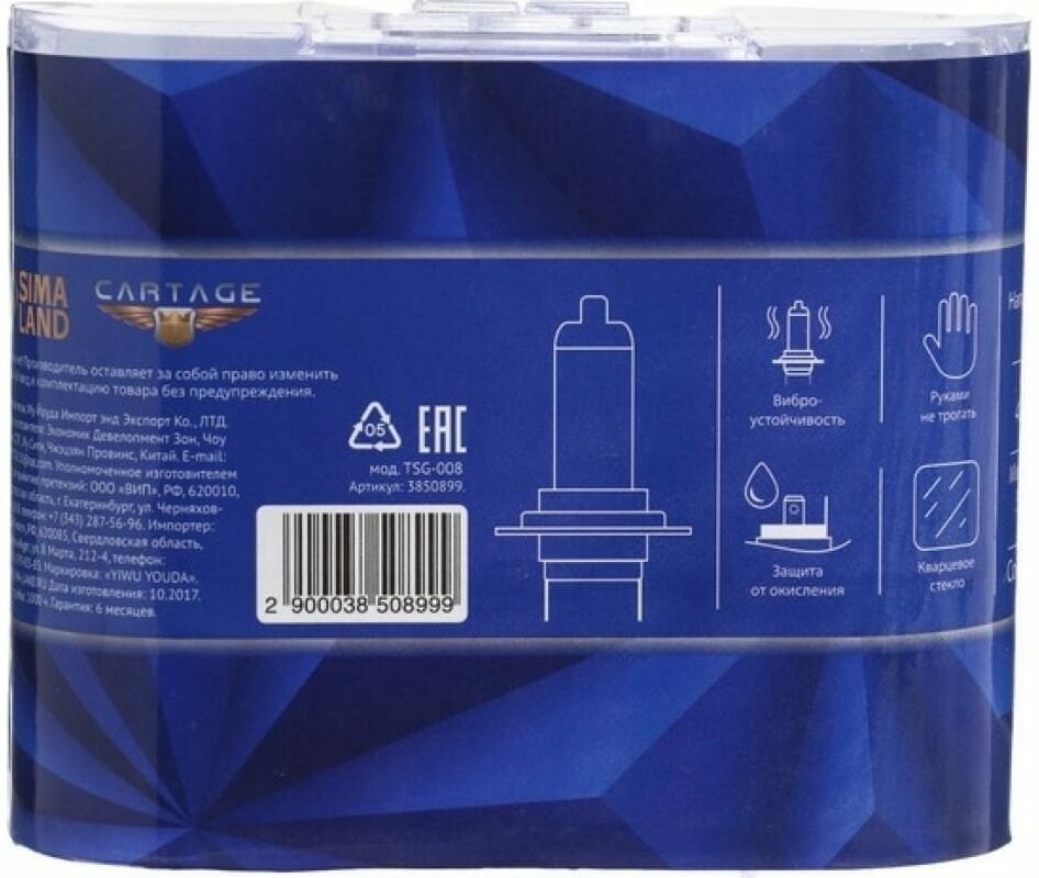 Галогенная лампа ТероПром 3850899 Cartage Cool Blue H7, 12 В, 55 Вт +30%, набор 2 шт