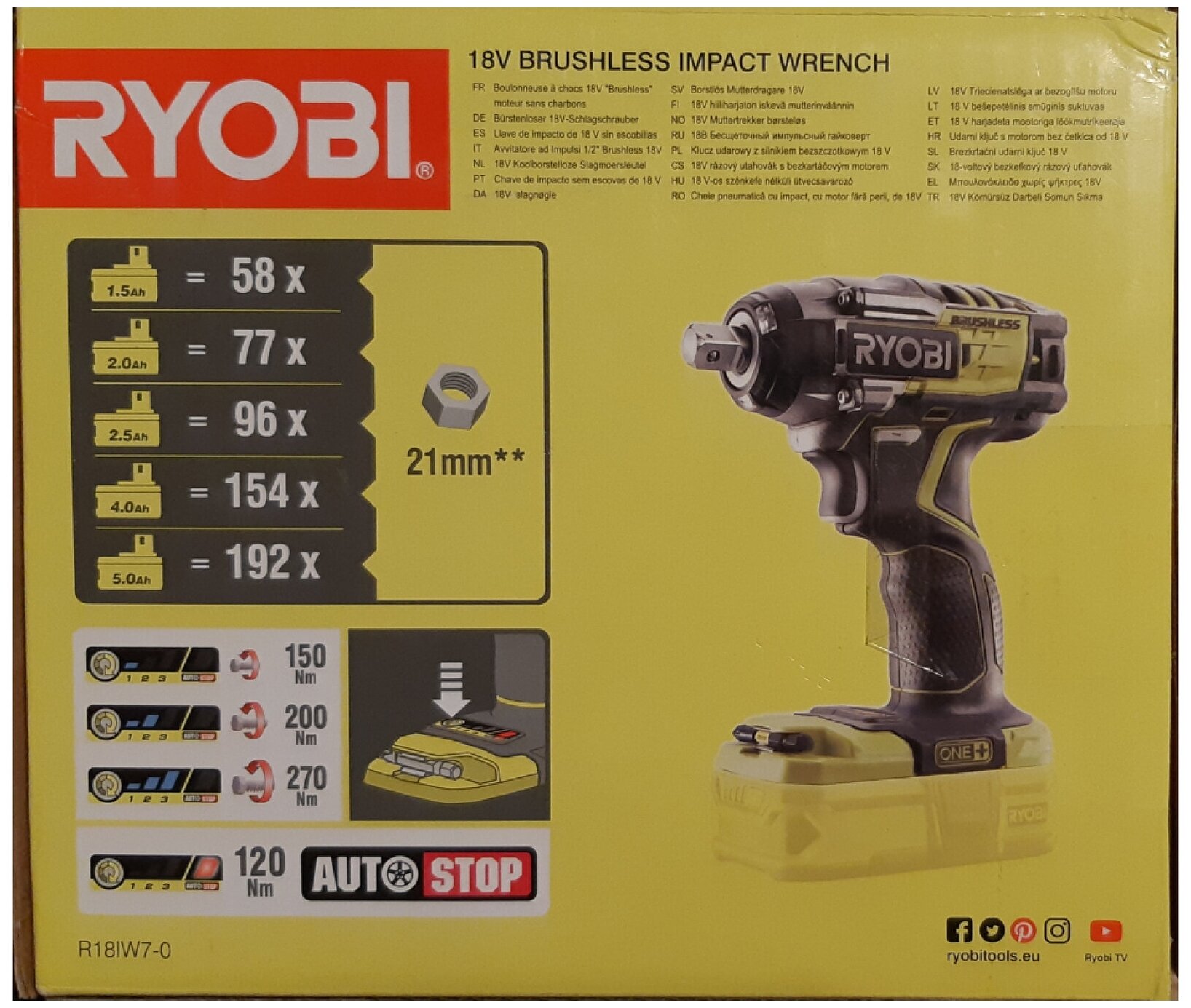 Купить Бесщеточный аккумуляторный ударный гайковерт Ryobi ONE+ R18iW7-0 5133004220