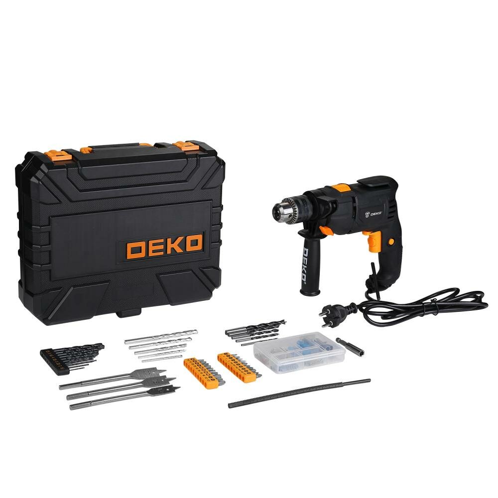 Дрель ударная сетевая DEKO DKID600W, набор инструментов 92 предмета