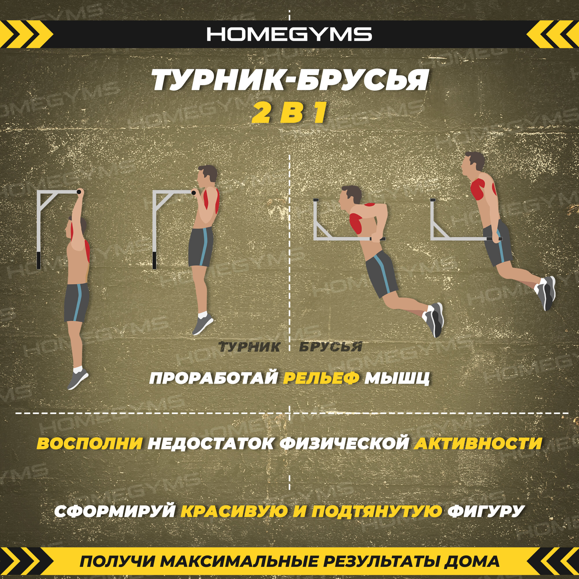 Турник-брусья навесной "2 в 1" Домашние Тренажеры интересное: