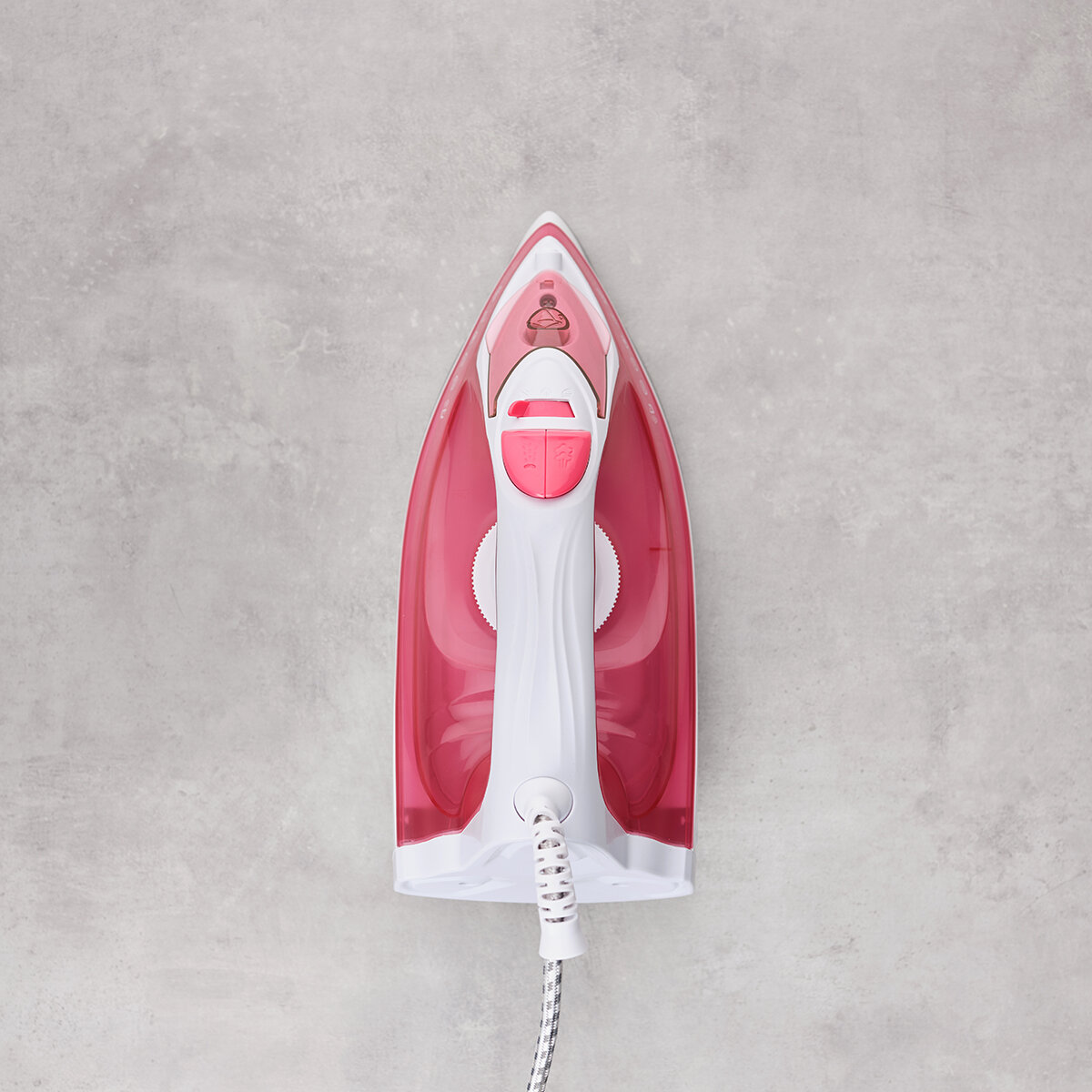 Розовый помощник без недостатков. Весит не много, подходит для ежедневного использования. Нагревается быстро. Шнур вращается, не мешает руке, его длина 1,8 м, мне вполне хватает. По ткани легко скользит, разглаживает любые складки. Не протекает.