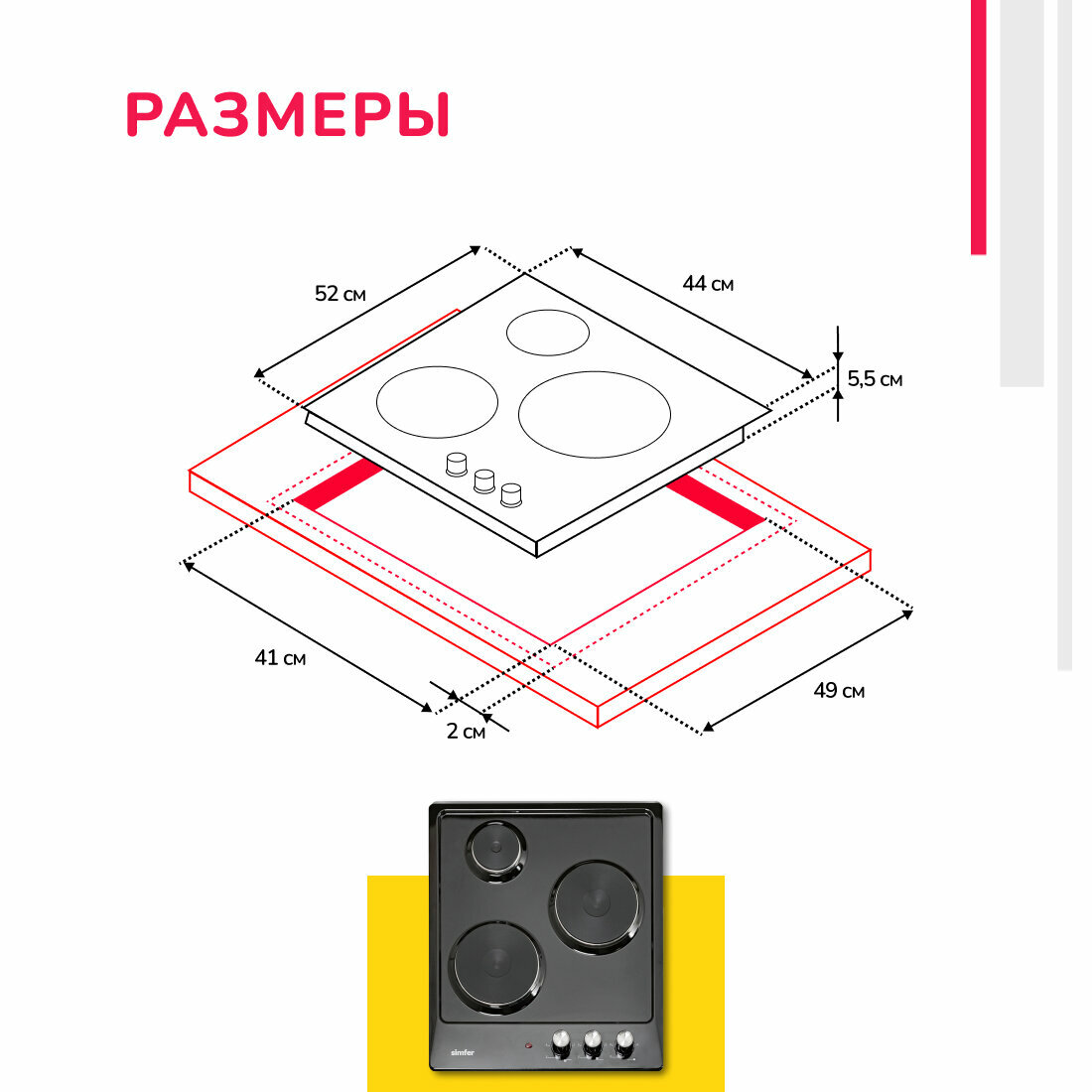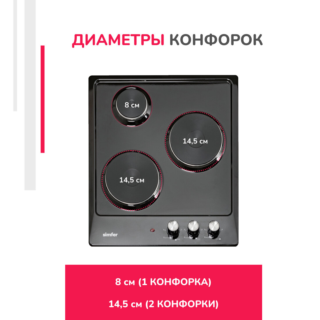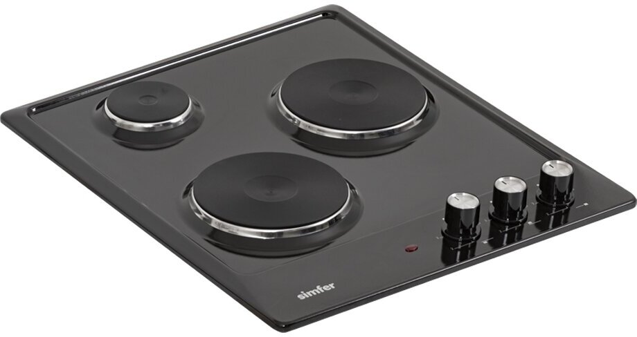 Электрическая варочная панель Simfer 45см / 3 конфорки / 2,5 кВт мощность / эмалированная сталь / 5 лет гарантии / черный