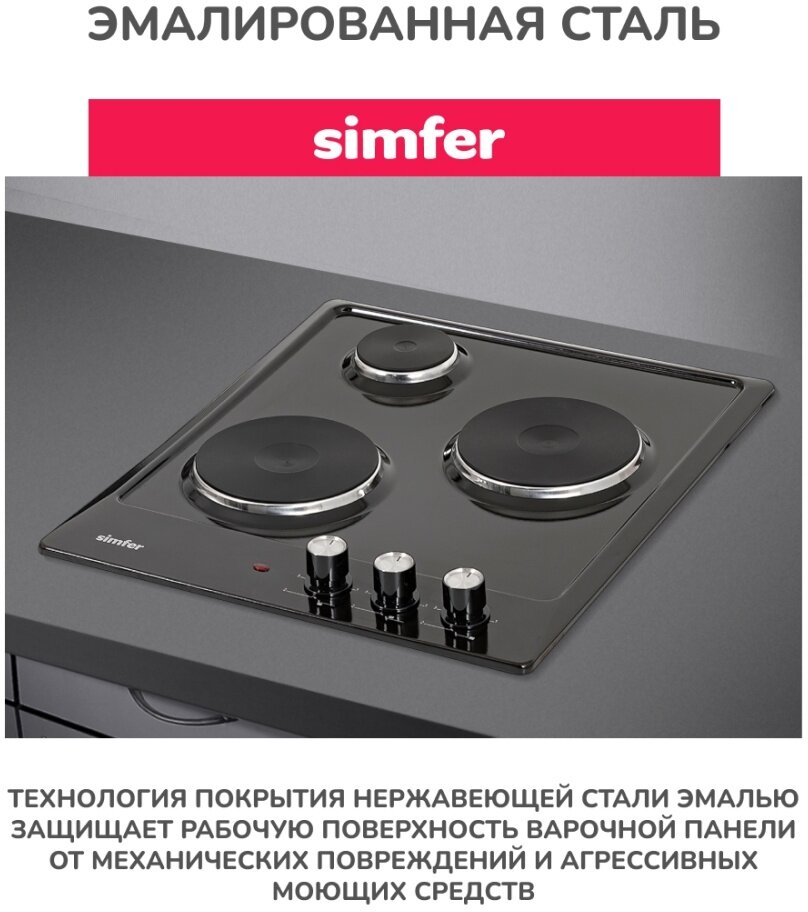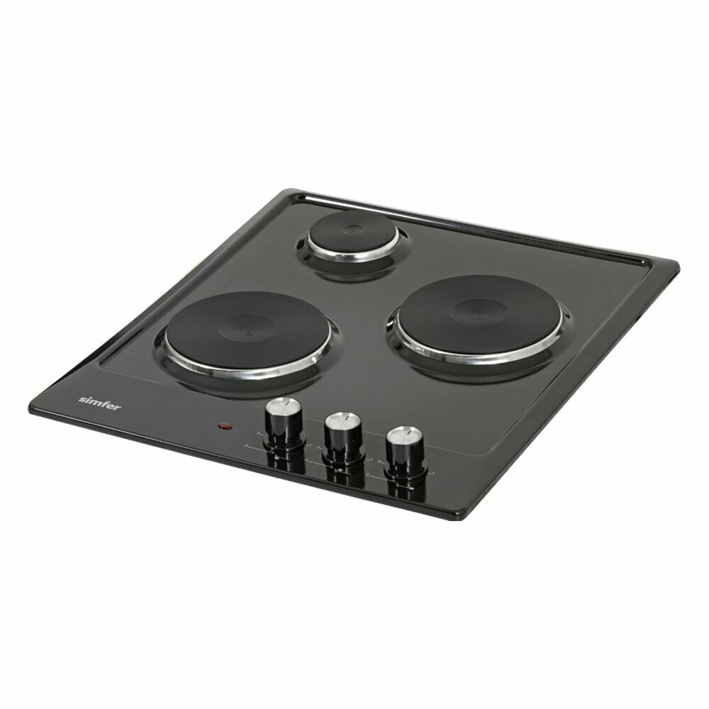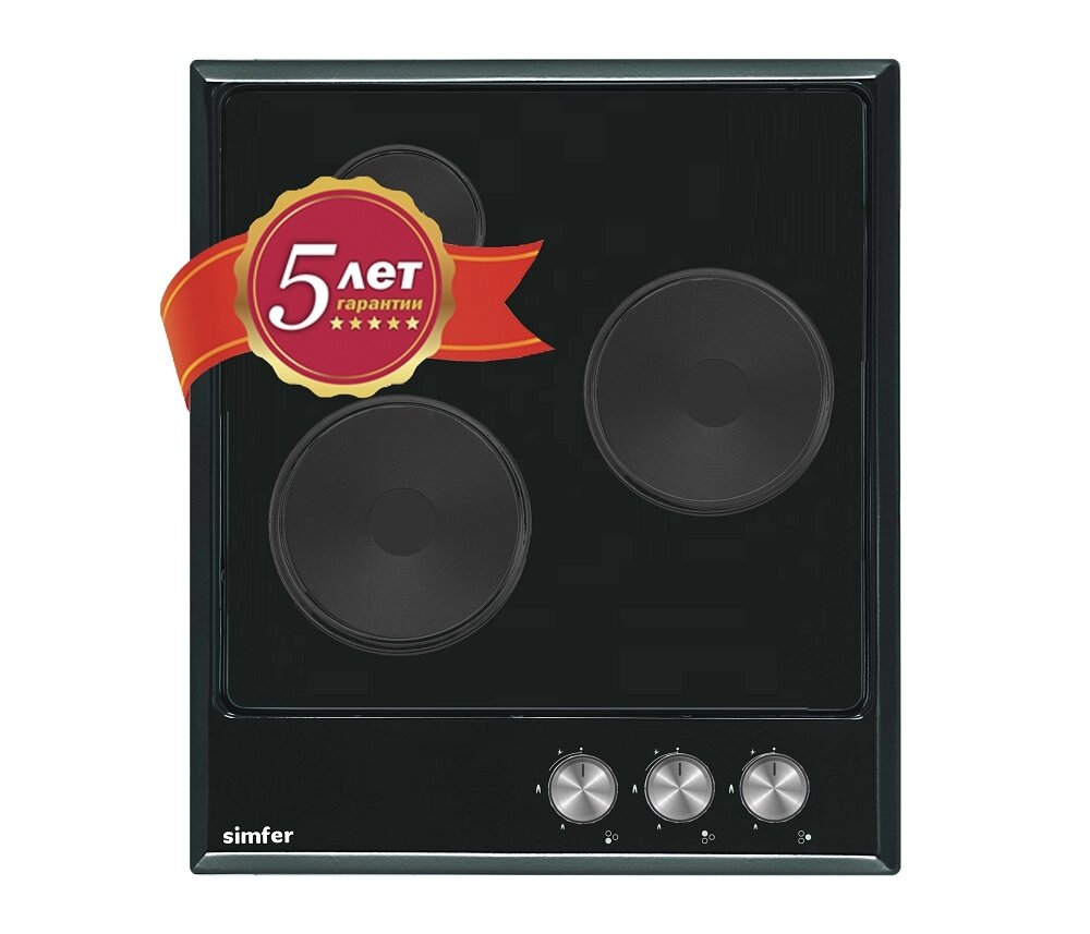 Электрическая варочная панель Simfer 45см / 3 конфорки / 2,5 кВт мощность / эмалированная сталь / 5 лет гарантии / черный