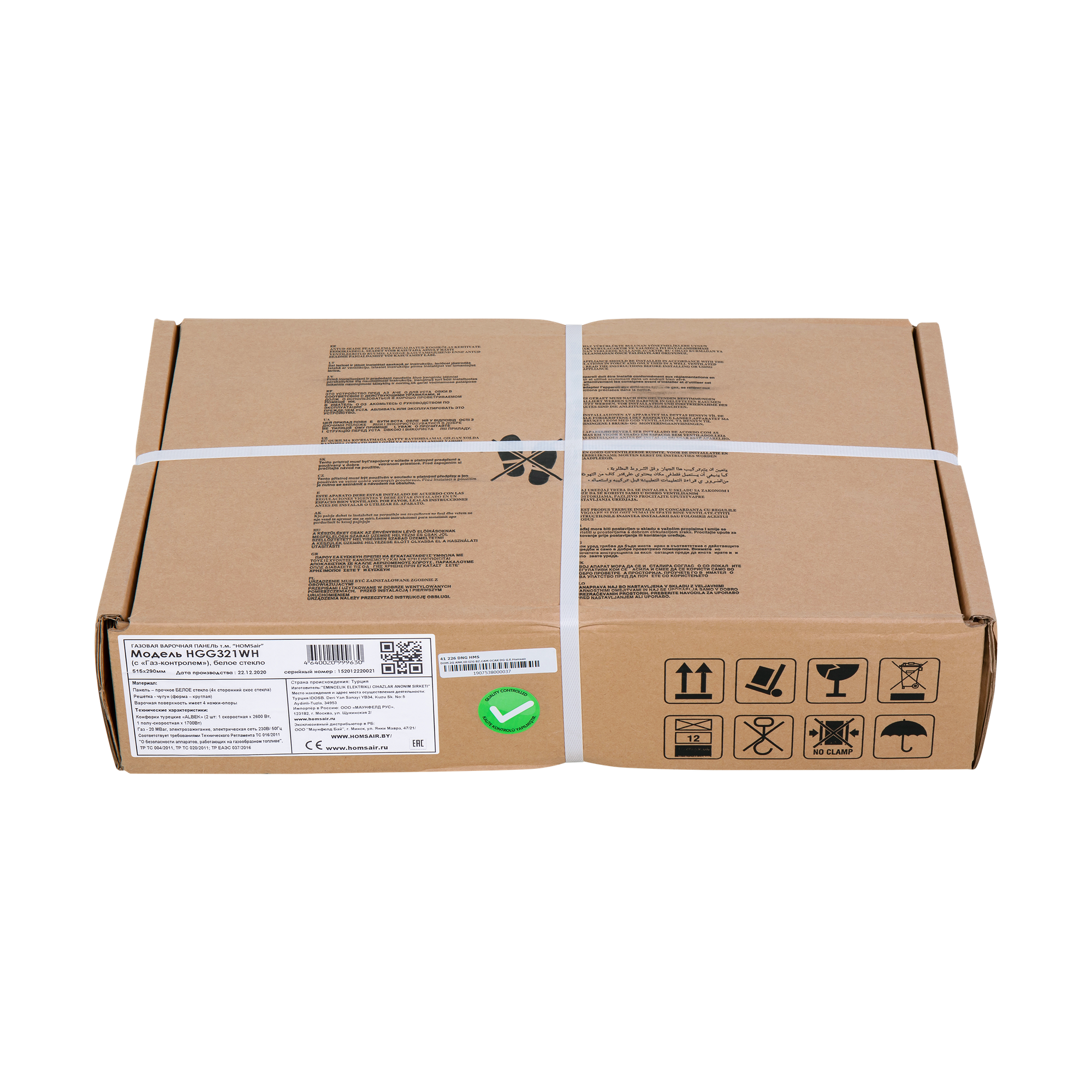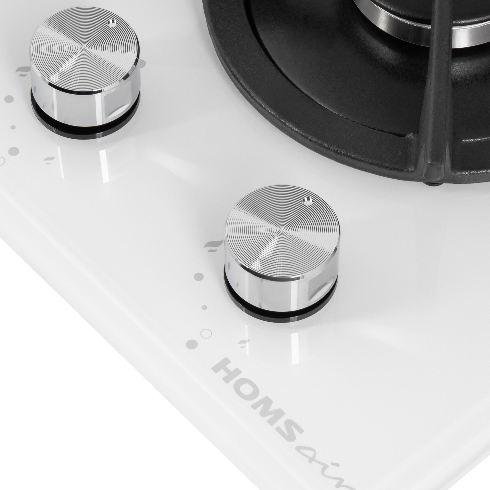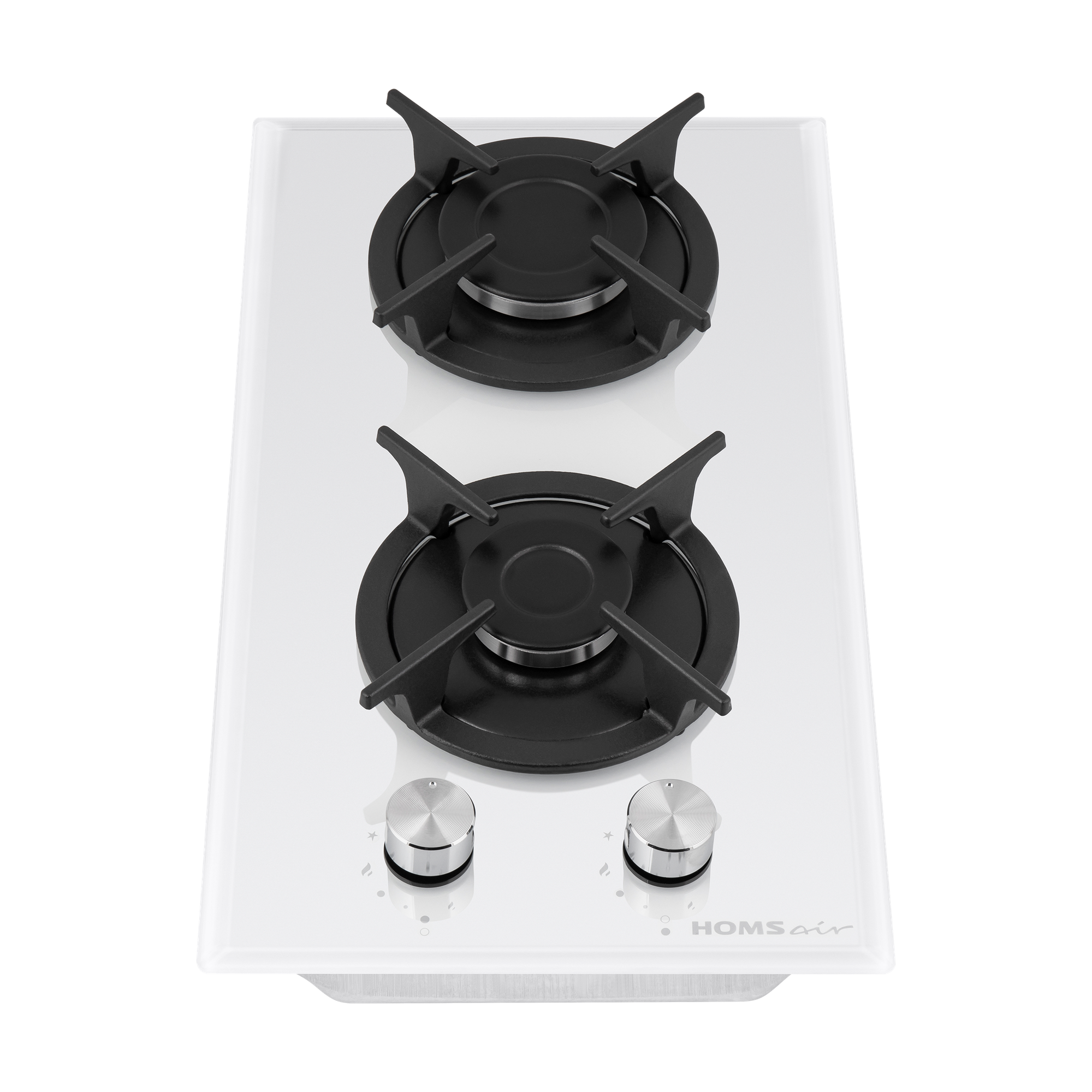 Газовая домино HOMSair/ Домино, газовая, 30см, закаленное стекло, чугунные решетки, автоподжиг, газ-контроль, белая