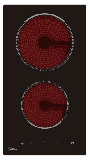 Midea Электрическая варочная поверхность HiLight Midea/ Домино, ширина 30 см, 2 зоны нагрева HILIGHT, сенсорное управление, 9 уровней мощности, таймер, индикаторы остаточного тепла, функция "Защита детей", цвет - черный, дизайн рамки - без рамки