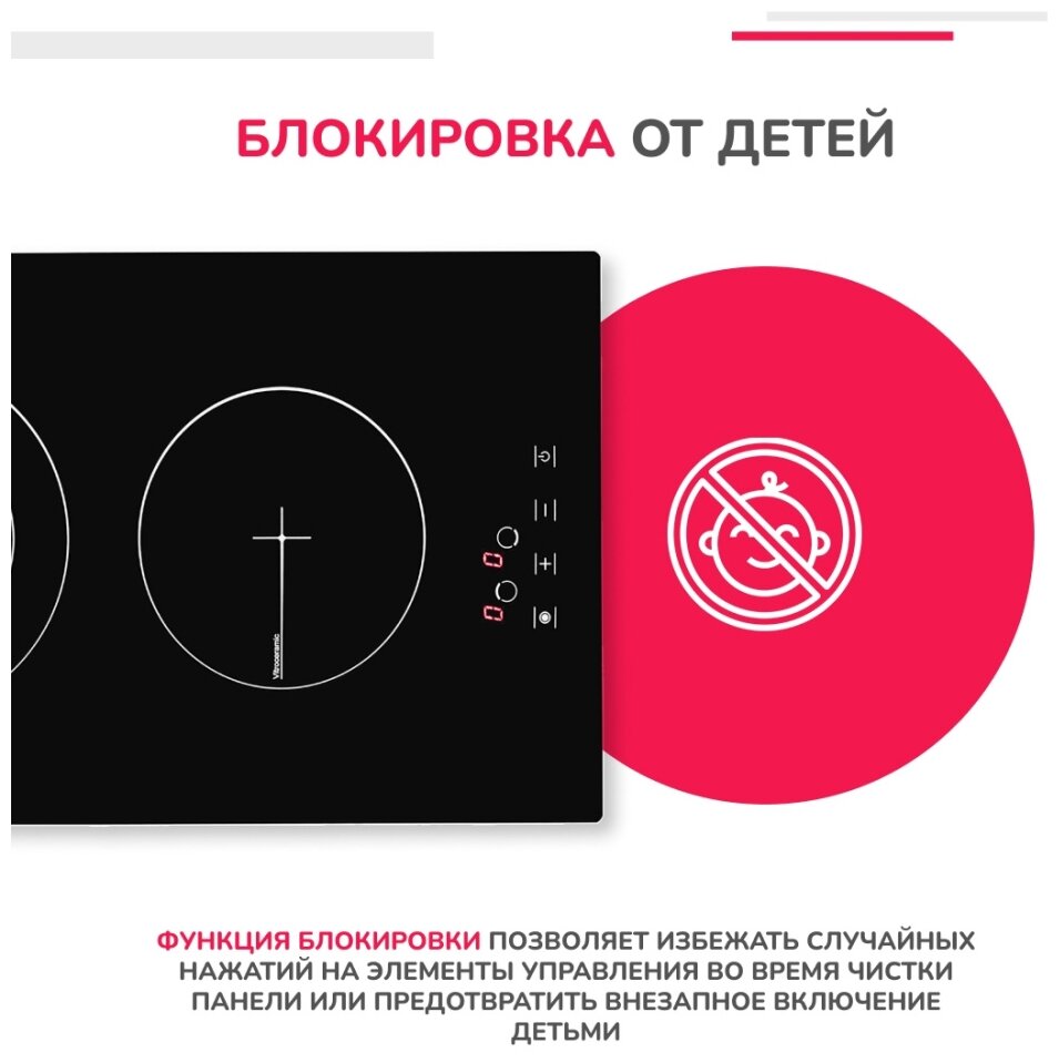 | Безопасность | защитное отключение конфорок / индикатор остаточного тепла / кнопка блокировки панели |