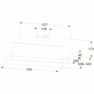 Вытяжка, встраиваемая в шкаф с выдвижным экраном, ширина 60 см, отвод/рециркуляция, 600 м3/час, механическое упра