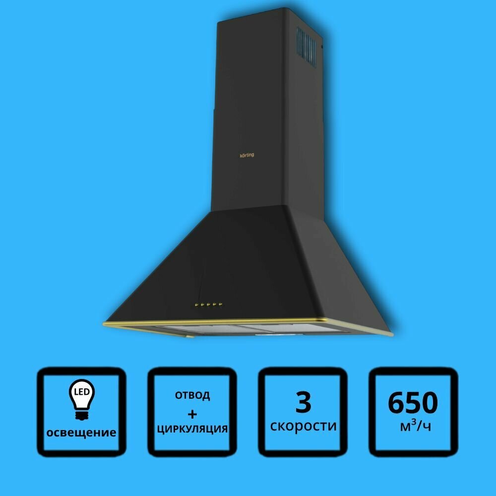 Настенная вытяжка Korting/ Кухонная вытяжка, Настенная вытяжка, Ширина 60 см, Мощность: 650 м3/ч, 3 режима, Механическое управление, Алюминиевые жировые фильтры, LED освещение, цвет - слоновая кость, профиль рамки и кнопки - золото