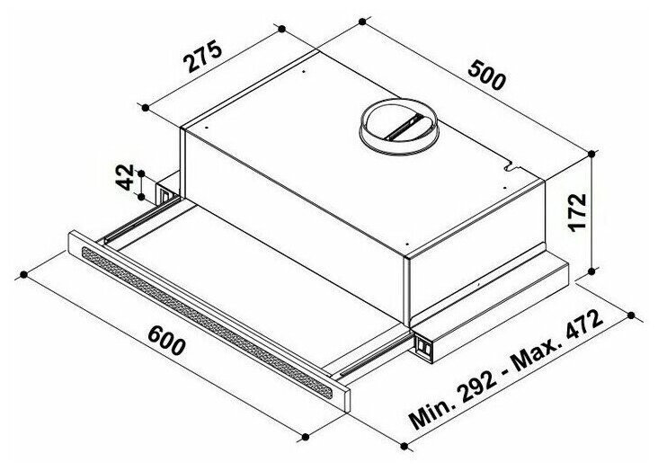 Встраиваемые вытяжки Korting/ Встраиваемая с выдвижным экраном, ширина 60 см, 2 режима, клавишное управление, 600 м3/ч., алюминиевые жировые фильтры,LED освещение, панель - нерж сталь+черное стекло
