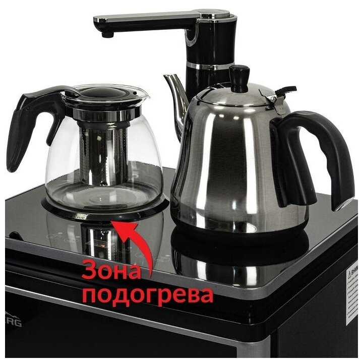 Кулер для воды HIBERG F81 FGB напольный, нижняя загрузка, электрочайник, черное стекло