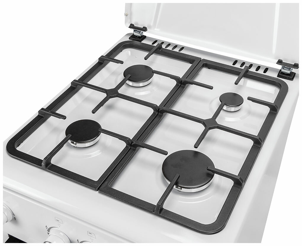 Газовая плита Hyundai RGG223, газовая духовка, металлическая крышка, чугун, белый
