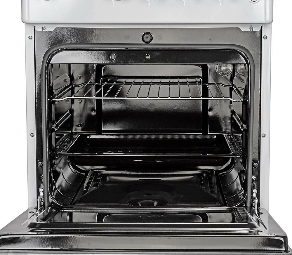 | Плюсы: | Полностью газовая плита, включая духовку. Удобное механическое управление барашками. |