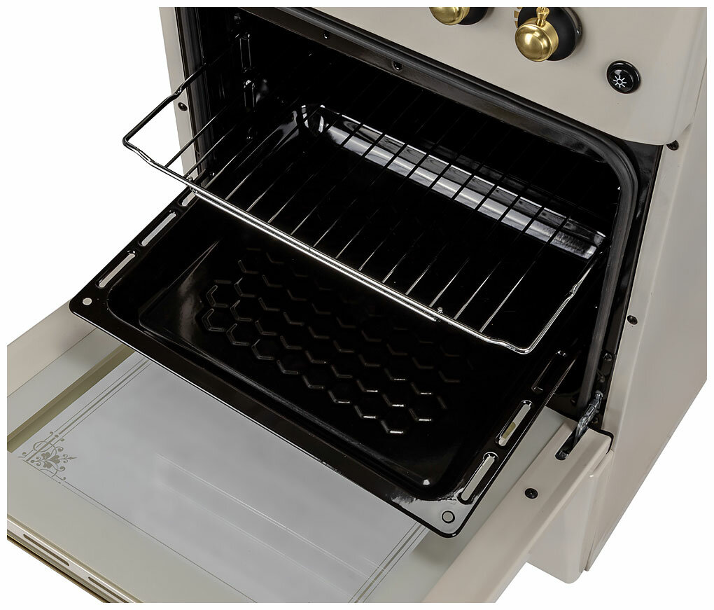 | Плюсы: | Мама выбирала себе домой, попалась эта на глаза и загорелась. Красивая, простая, недорогая. две решетки, проще убирать поверхность, если убежало что-то на плиту, то поднял одну половинку, протер, а не всю газовую плиту освобождать. Регуляторы поворачиваются плавно. Духовка греется быстро, нагрев идет сверху и снизу, в прошлой только нижний прогрев был |