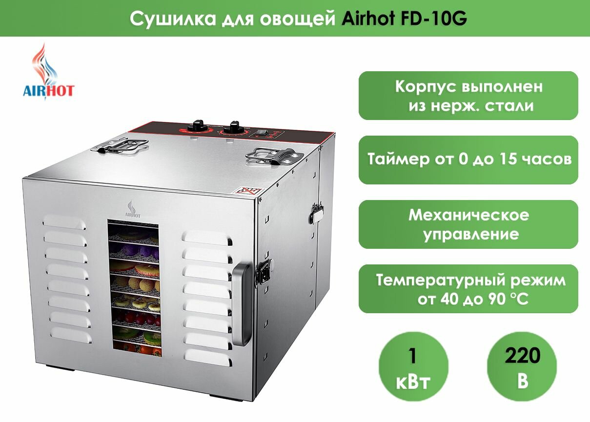 Сушилка для овощей и фруктов AIRHOT FD-10G, дегидратор для сушки электрический
