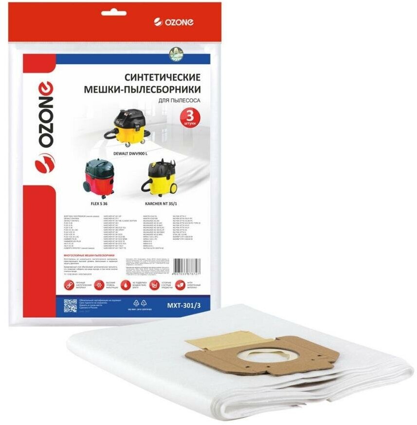 Синтетические мешки-пылесборники Ozone MXT-301/5 для пылесоса KARCHER NT 35/1, DEWALT, FLEX, HAMMER и других, 5 шт