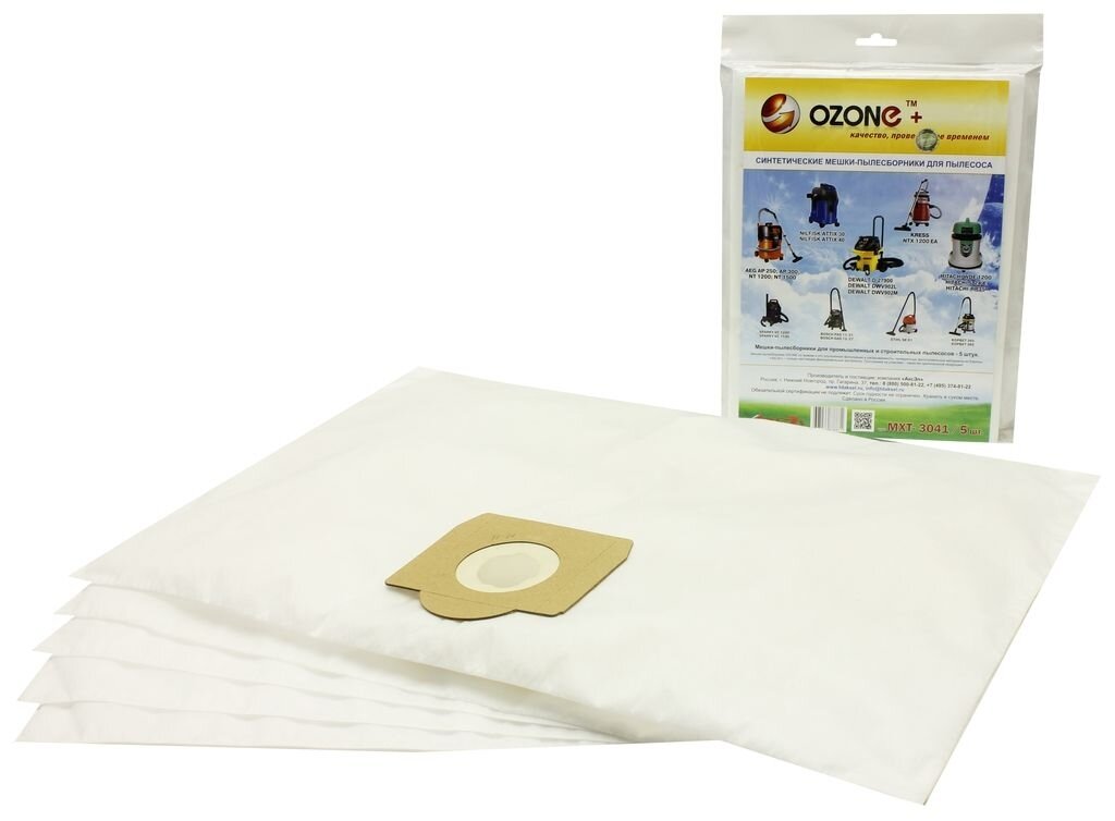 Пылесборник OZONE MXT-3041/5 синтетические, для AEG, NILFISK, EINHELL, BOSCH упаковка 5 штук / мешки для пылесоса