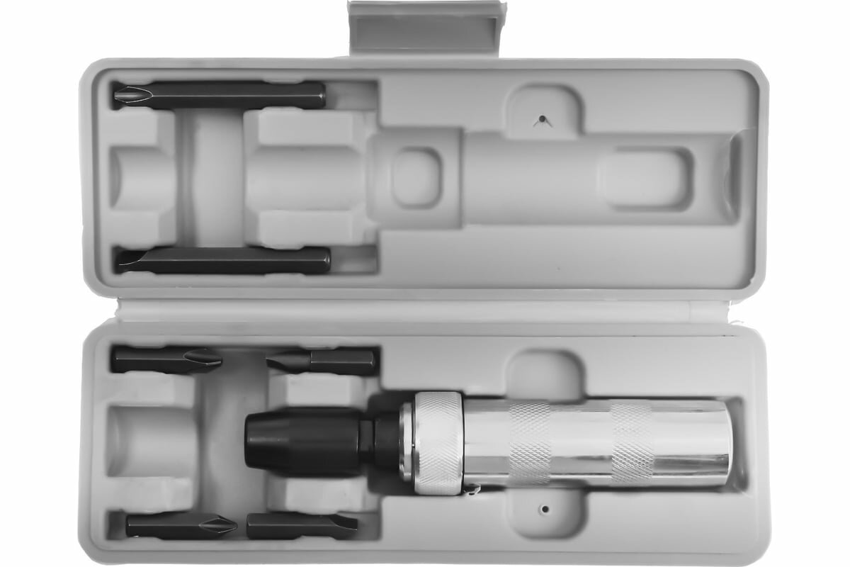 Отвертка ударно-поворотная TUNDRA 1/2", с битами 6 шт., металлическая рукоятка, кейс