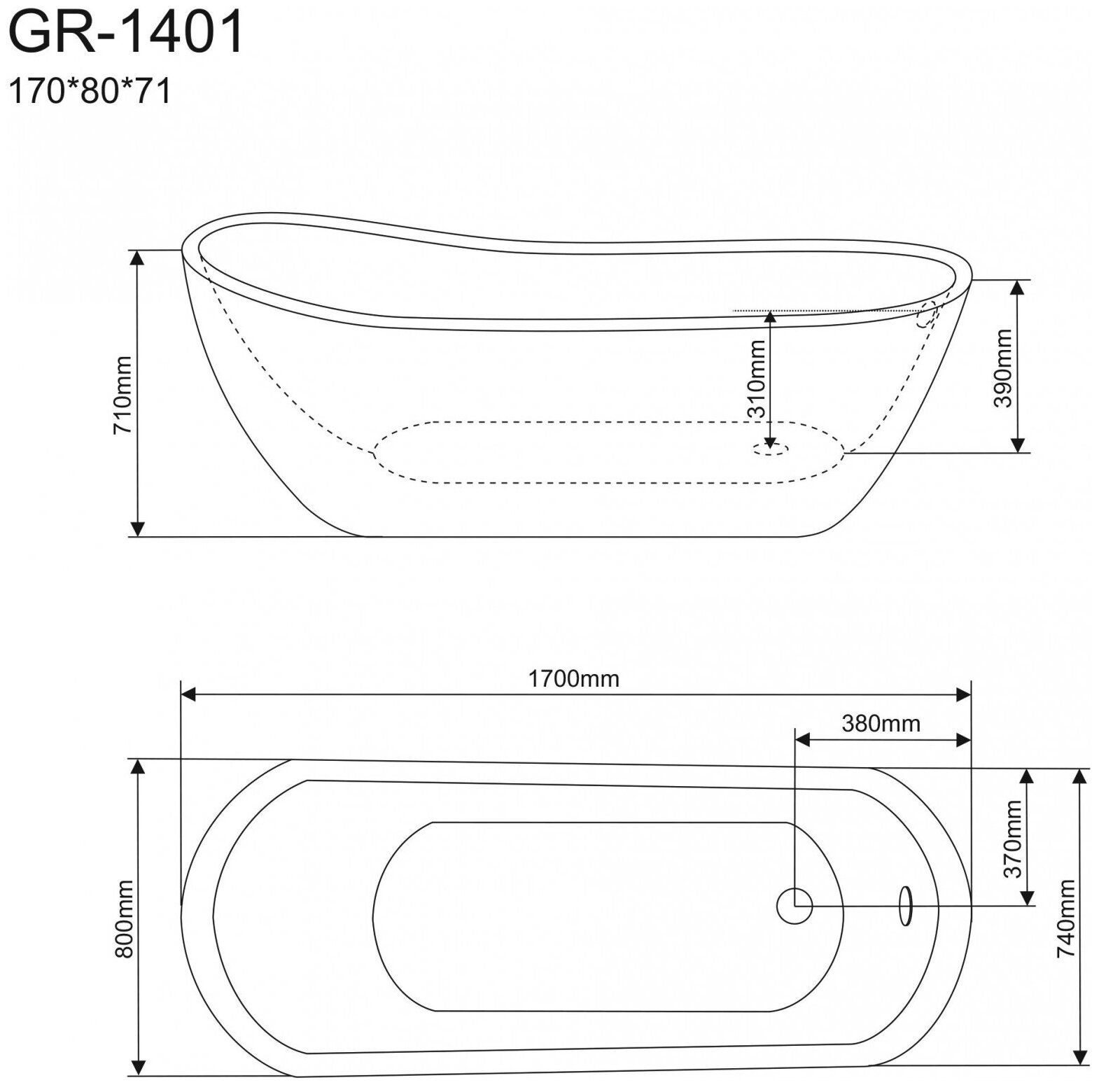 Ванна отдельностоящая GR-1401 (170x80x71) GROSSMAN