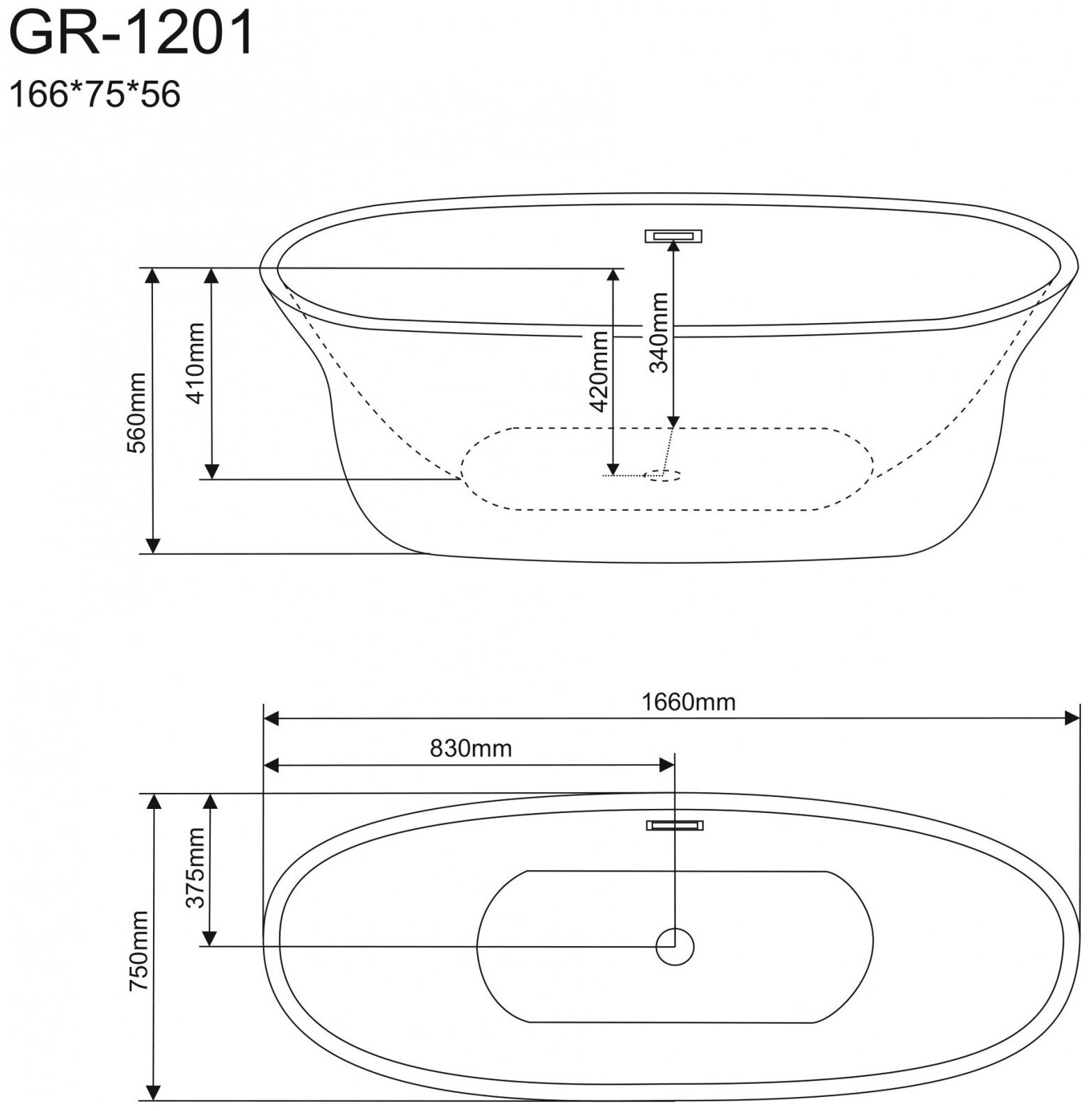 Ванна отдельностоящая GR-1201 (166x75x56) GROSSMAN