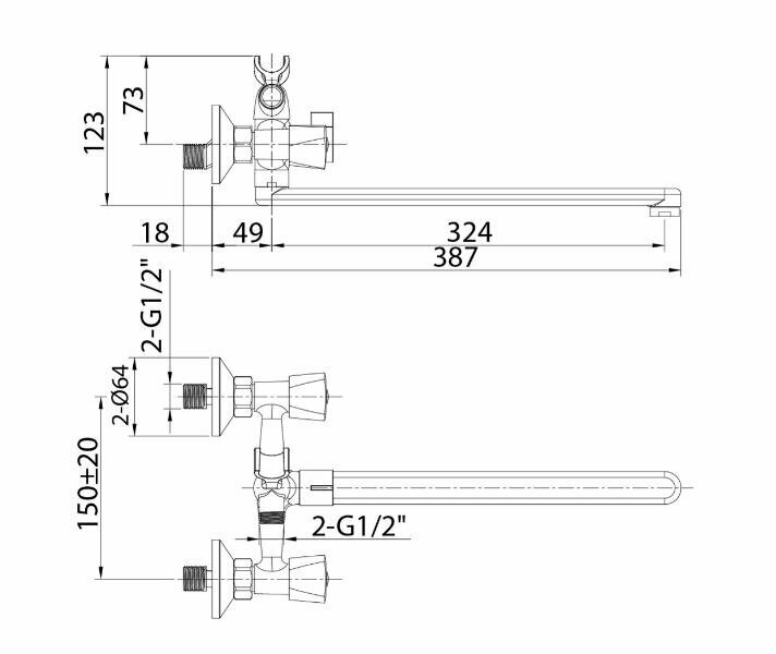 Смеситель для ванны с длинным изливом 426924 Tring TRISBL2M10