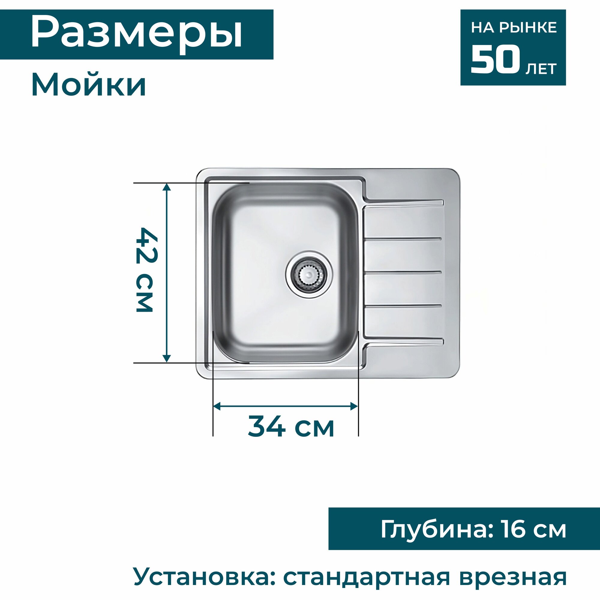 | Размеры мойки (ДхШ) | 61.50х50 см |